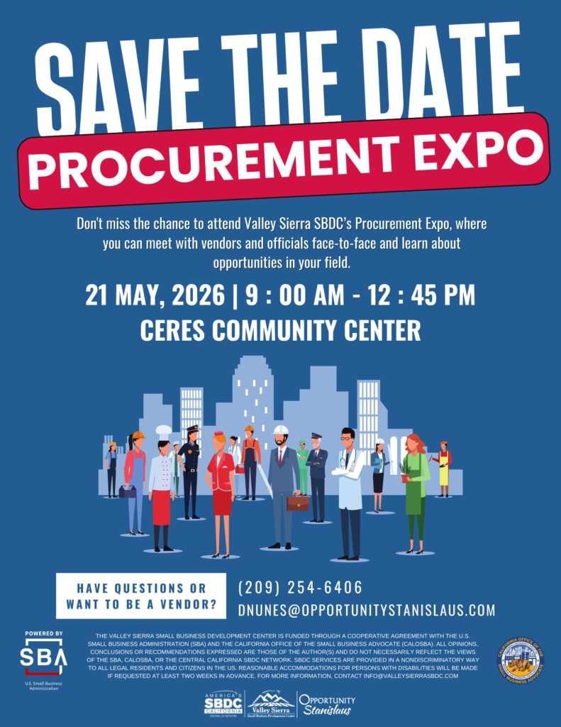 The award-winning Valley Sierra Small Business Development Center (SBDC) promotes the development, growth and success of small businesses and aspiring entrepreneurs throughout Stanislaus and Tuolumne Counties, thereby enhancing individual, family, community and regional prosperity.